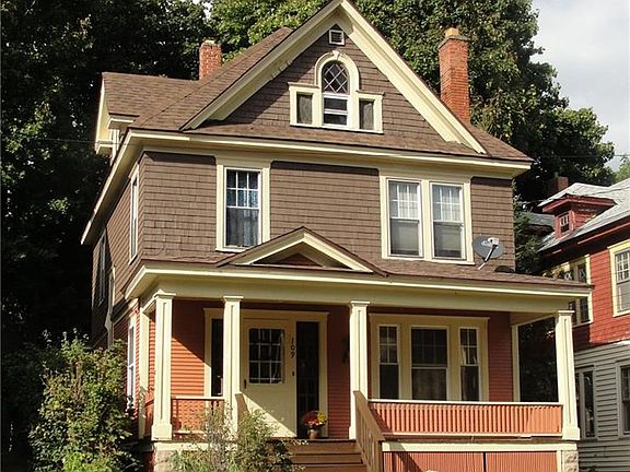 'Perfect blend of charm & character of yesteryear and all amenities of today!' Great front porch opens to parlor. Note the hardwood floors & natural woodwork. Beautiful mantle in large living room (all replacement windows) opens to dining room with window seat. Newer kitchen (2009) complete with all appliances. Back door to large patio. Four generous bedrooms & newer bath (2009). New hot water heater, furnace and roof 6 years old. S.U. Financing area.