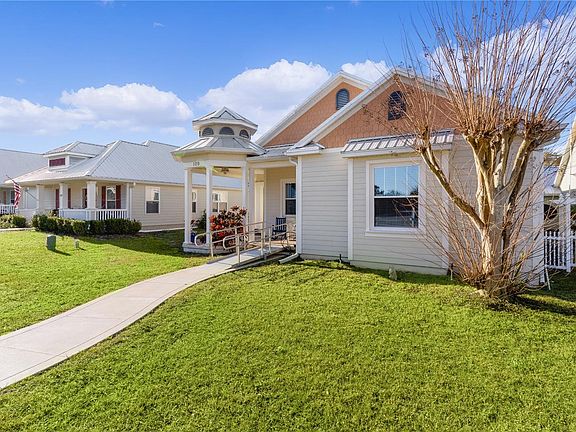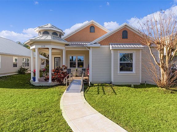 Looking for a quaint, cozy, peaceful and beautiful "village" neighborhood to call home? This home should be on the top of your list! With 14 Key West themed homes and a beautiful view of Lake Enola, you are going to fall in love with your village. This home is equally appealing for it offers space, comfort, affordability, convenience and luxury. Pulling up to the curb, you notice high curb appeal with a beautiful design, lively colors, Key West style architecture with high roofs and large front porches. Stepping inside, you are greeted with a foyer, living room and dining room offering decorative posts, high volume ceilings with crown molding, beautiful luxury vinyl plank flooring, energy efficient windows for natural light, tall baseboards and spacious rooms. The living and dining rooms offer plenty of space to relax and entertain. The main rooms are open to the large remodeled kitchen which features luxury appliances, two sinks, designer faucets, 40†upper cabinets topped with crown molding, granite counter tops, recessed lighting and a breakfast nook. The farmhouse sink provides accessibility without sacrificing beauty, quality or function. The appliances include a chef's CafÃA© French-door built-in convection oven, Samsung induction cook-top range, Samsung venting hood, Samsung stainless steel dishwasher and a Samsung smart refrigerator. You are going to fall in love with this kitchen! The comfortable owner’s suite offers privacy, a walk-in closet and an en-suite bathroom which has dual sinks and a large garden tub/shower. The two spacious secondary bedrooms are across the home and share a hall bath. The third bedroom could easily be your perfect den or home office. The home has a front porch and a rear, screened lanai giving you year round outdoor enjoyment. The attached, 2-car garage is in the rear and offers a large driveway for extra parking. The home has many ADA accessibility features giving you comfort and convenient use. The home's recent updates include a new chef's kitchen with a $20,000 appliance package, a long-life metal roof installed in 2018, new energy efficient windows in 2023, new hot water heater in 2023 and new energy efficient A/C system in 2024. Being a Key West themed neighborhood, each home has an inviting front porch intended to bring the neighbors together. In the cul-de-sac you will find a memorial to our veterans and POWs. Guest parking is plentiful with a paved lot. The HOA has a dock on Lake Enola offering you great views with peace and quiet. The affordable monthly HOA fee includes water and lawn service. The HOA works hard to keep the monthly fee low! Downtown Umatilla is a moment away while downtown Eustis is approximately 5 miles away. The area is known for easy living and offers scenic lakes, historic small towns like Mt. Dora, Tavares, Eustis, plenty of entertainment, great shopping and dining along with quality healthcare. Call today for more details and to schedule your private tour!