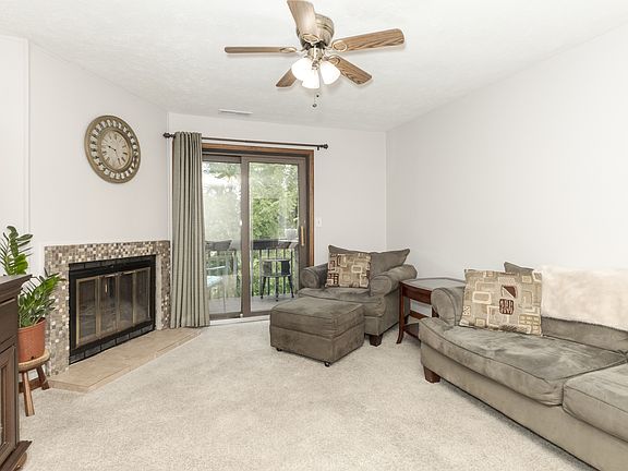 Beautiful furnished 2 Bedroom condo on 2nd floor, with very private deck with no backyard neighbors! Living room with corner fireplace. Newer kitchen remodel with white kitchen cabinets and all appliances to remain. Generous bedroom sizes & closet organizers installed. Newer furnace/Newer ac. All newer windows. Monthly fee is $155/month--covers lawn care & snow removal. Secured building. Pets ok, rentals ok! Move-in ready!! Fully Furnished!---All furniture and appliances stay with the unit!!!