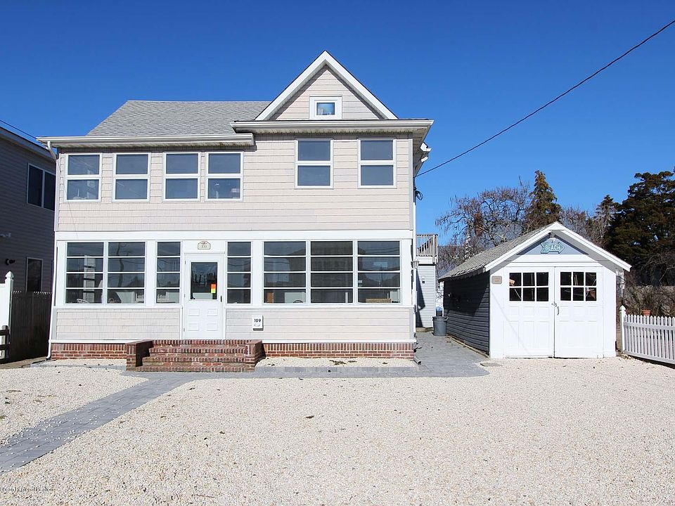 Although originally constructed as one of the first homes in Lavallette, this massive 6 bedroom, 2 bath home has been added onto and recently extensively renovated. Features include 3 levels of living space, southern facing sunny front porch, large living/dining room, renovated kitchen with granite countertops & stainless steel appliances, 2 first floor bedrooms, 3 large bedrooms on the 2nd floor with 2 additional sun rooms, 2nd floor rear balcony & 1 more bedroom on the 3rd floor with a huge walk-in-closet. Plenty of off-street parking, new shed for storage & private rear yard make this an ideal year round home. Newly sided, A/C, furnace, cement patio, new windows and exterior doors makes this home move-in ready.