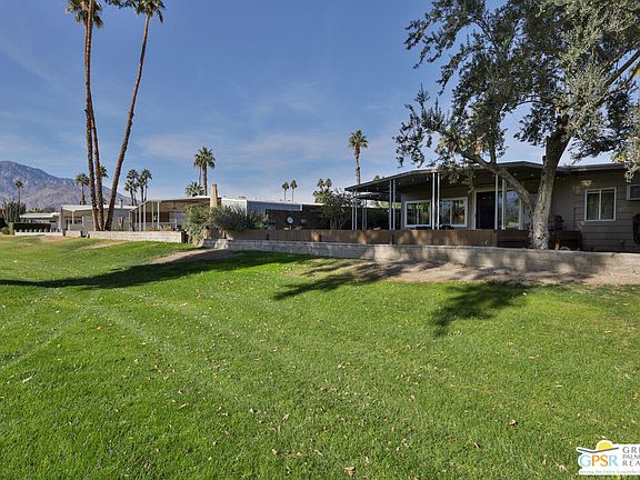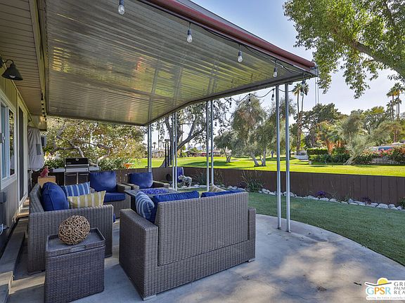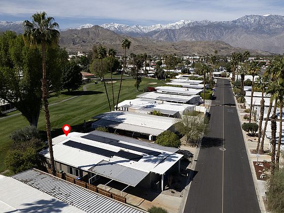 Come see this updated 1972 1440 sq ft, 2bed , 2bath with polished concrete floor bonus and storage rooms. This home is a must have golf course property located at the 6th tee with spectacular mountain views. Property is located in one of the premier 55+ guard gated golf course communities in the valley. So many improvements which includes: 33 solar panels with a 25 yr assumable lease ($210.90/mo) installed in 2021, Lenox 4-ton HVAC system and new water heater both installed in 2022. Current owners since 2022 have updated: custom tile master bath shower, new exterior doors, upgraded lighting throughout, designer window blinds plus improved hardware fixtures throughout the home and repainted interior. Home has central air/heat but also comes with energy savings thru use of Slim Line Master Cool Swamp Cooler. There have also been improvements to the undercarriage with tightened pier jacks and installation of a new rodent barrier. Exterior updates to landscaping, hot tub, natural gas BBQ, natural gas fire pit, and outdoor furnishings which are included, make the use of the outdoors as enjoyable as indoors. The home inside is being sold mostly furnished, there are tagged exceptions. Date Palm CC has many amenities, including golf, pickle ball, tennis, pools and spas, gym, on-site and golf pro shop plus many social clubs and activities. Don't let the space rent rate deter you. It is commensurate with what this park has to offer! over any like it in the valley. All this home really needs is... YOU!!