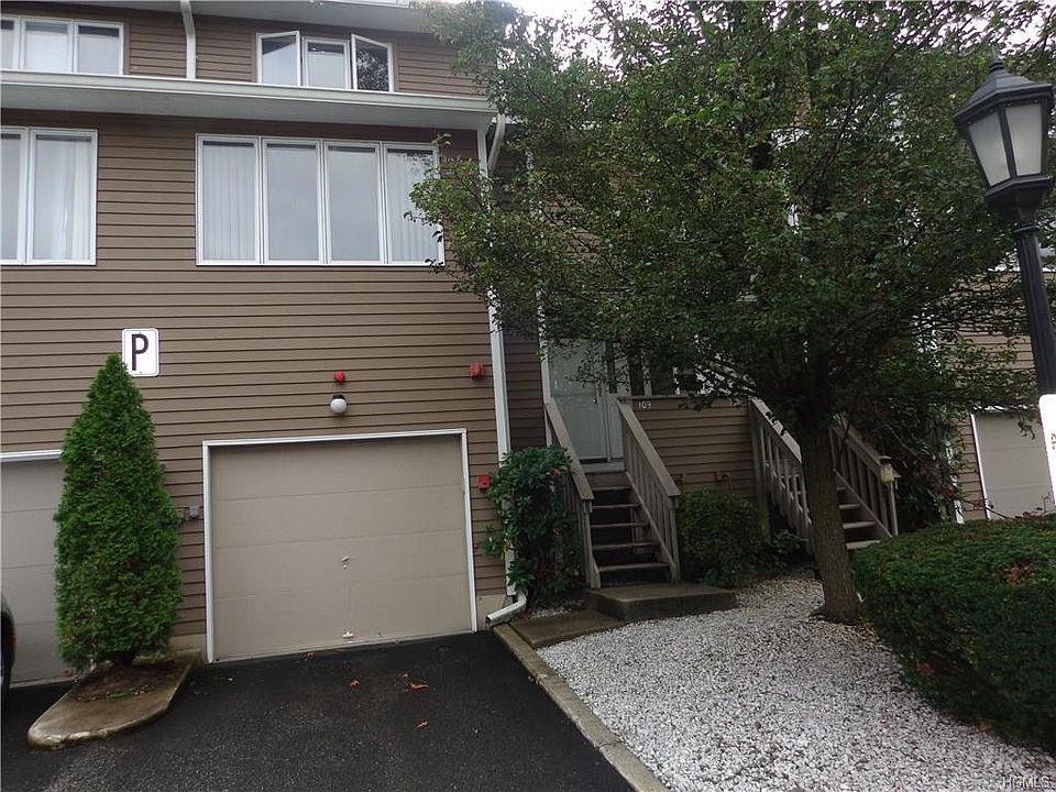Lovely Village Green townhouse with many updates, and convenient location in complex. This spacious home boasts large rooms plus finished room in basement perfect for office, play room or extra living space. Hardwood floors throughout, cathedral ceilings and private balcony and yard area. Clarkstown schools, one-car garage, plus inground pool, playground, clubhouse and all condo amenities!