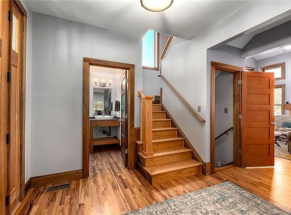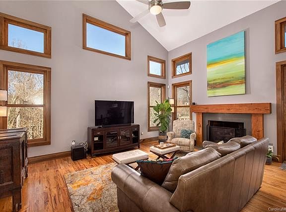 NESTLED IN THE MOUNTAINS WITH YEAR ROUND VIEWS, classic Craftsman meets rustic modern in this Greenbuilt NC- and Energy Star-certified home. Featured in 2009 Parade of Homes, thoughtfully constructed residence is conveniently located in highly sought-after Village Park gated community minutes to downtown Asheville, Mission Hospital, Biltmore Estate, and the Blue Ridge Parkway. This light-filled home has an open floor plan and features locally milled poplar trim and gorgeous red oak hardwood throughout. The chef's kitchen with a locally crafted butcher block island flows beautifully into the two-story great room with a fireplace and mountain views. The serene master bedroom on the main level has an ensuite bath with modern soaking tub and tiled walk-in shower. Lower level with a private entrance hosts a large media room, kitchenette/wet bar, and full bath. Located in the popular Reynolds 28803 with county taxes. This home offers the lifestyle you desire with the convenience you need!