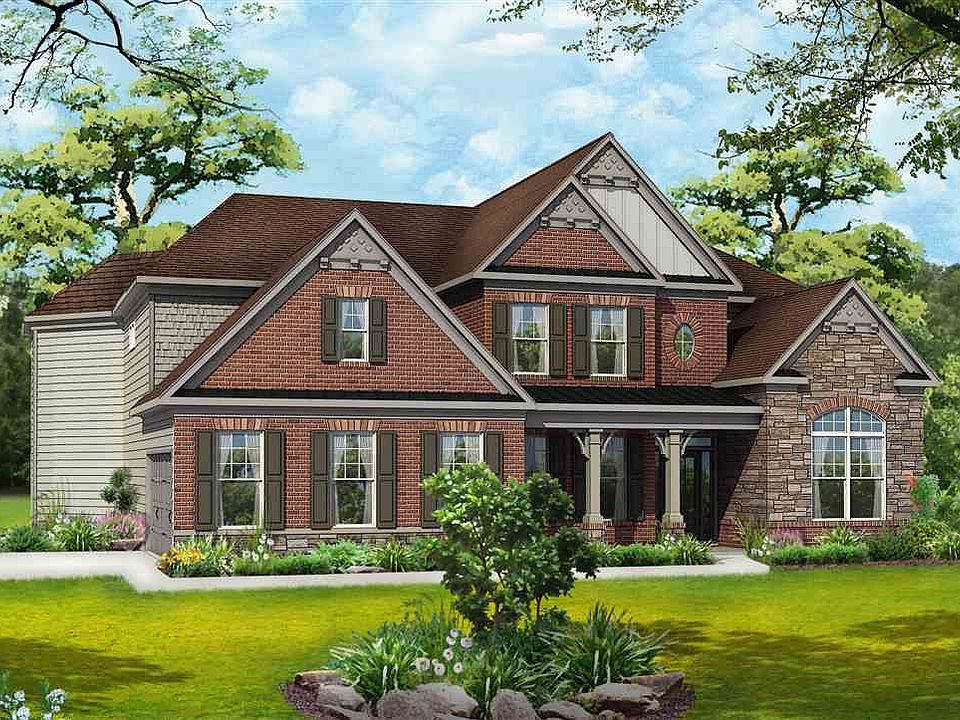 "The Oakwood" on A BASEMENT with 9 ' walls. A magnificent home with almost 4200 +/- sq ft on a cul-de-sac a large home site with a treed backyard. Awesome gourmet kitchen with S/S appliances, double wall ovens, huge island open to the great room, breakfast room and fireplaced keeping room with coffered ceilings. Butlers pantry with granite, beautiful 5" hardwoods in LR, DR, foyer, kitchen, breakfast and powder room. Dining room with coffered ceiling. Junior suite on first floor with full bath. Awesome master with coffered ceilings, master bath with tile floor- granite vanities-oversized tile shower with dual heads, media room, second floor laundry, large bedrooms, WI closets and so much more!
