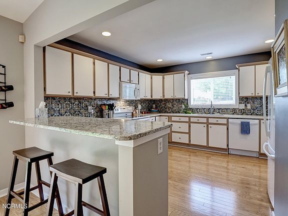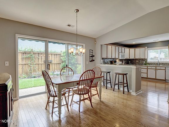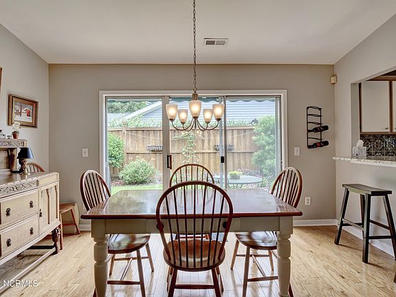 Gently lived in and beautifully maintained home with open floor plan, vaulted ceilings and backyard that fronts on conservation area. Located near Mayfaire and Wrightsville Beach, this 3 bedroom, 2.5 bath light filled home features hardwood floors in common areas, oversized, insulated, heated and cooled garage and updates including roof and HVAC 2012, dishwasher 2017, siding 2010. Garage and sunroom were enlarged when built, and all ceilings are smooth. Large kitchen with ample cabinets and counter space is perfect for the most ambitious cook. The 40'x 10' deck overlooks a newly sodded yard. Perfect for enjoying balmy Carolina evenings. No city taxes.