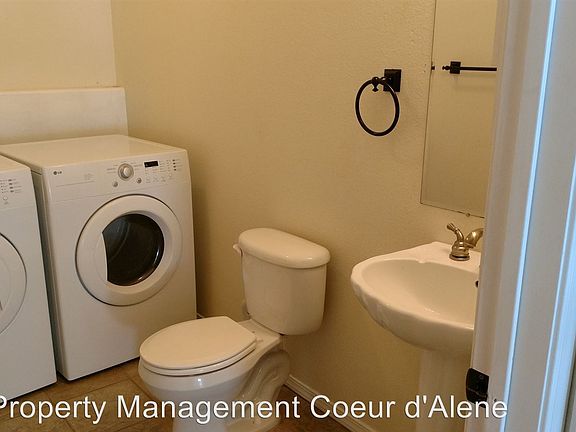 Modern Townhouse in Post Falls - Three bedroom, two/and a half bath duplex off of Spokane St. in Post Falls. The duplex also has a one car garage that is finished with extra storage. There is a fenced backyard with patio for outside fun. Inside the home has wood laminant floors in the the kitchen and tile flooring in the bathrooms. Upstairs features the three bedrooms all with carpeting. The living room also has a large front window and sliding glass door by the dining room for an open feeling. The dining room also features a pantry. The downstairs 1/2 bath has a washer/dryer. Pet (dogs only) only with owners approval. Please add $70.00 for wsg (RLNE3333769)