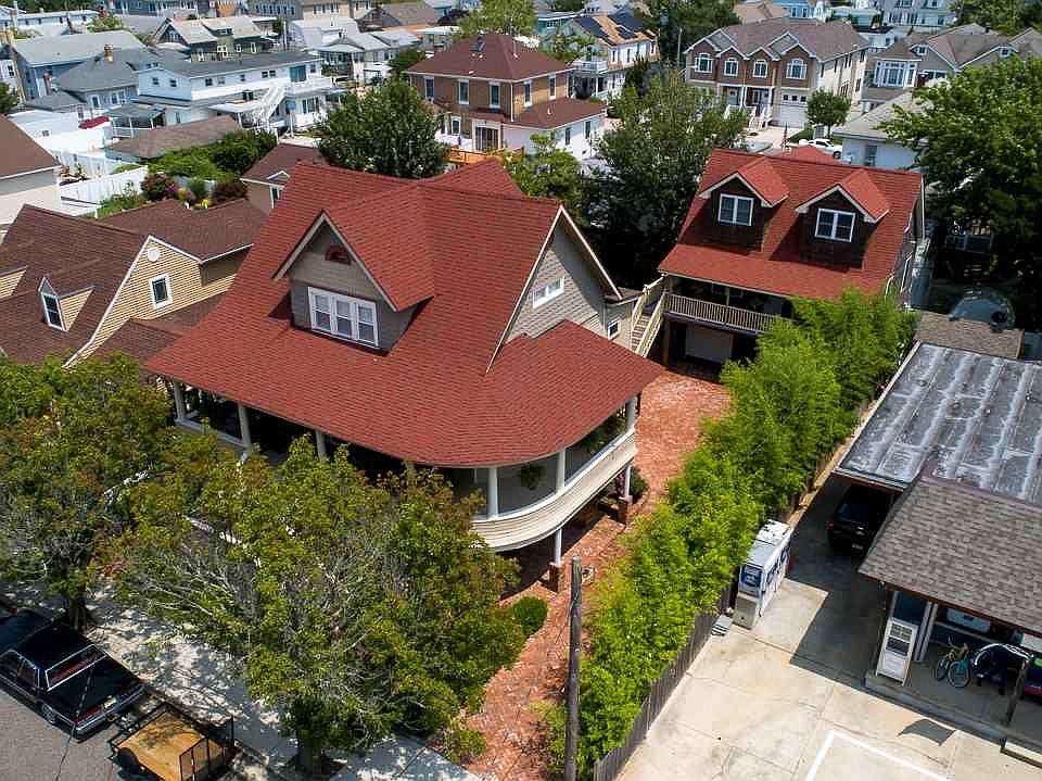 Welcome to 109 W. Aster, one of the two original homes built in 1904 on this bayside street in Wildwood Crest. 109 W. Aster is an original craftsman style home that offers the historic charm with all the modern amenities as it has recently undergone an extensive renovation. This property offers 3 units with a combined 9 Bedrooms, 4 bathrooms with all separate utilities that can be converted into separate condominiums with an approved variance. The Main House offers 4 Bedrooms and 2 Full Bathrooms with an expansive wrap around, covered, porch with curved lines that flow with ease. Enter the front door and to the left is the dining room, to the right the living room and to the rear, the chef's kitchen, bedroom, full bathroom and laundry room. There is reclaimed pine hardwood flooring throughout emphasized by the custom style crown molding and 8-inch baseboard trim that is perfection to match the original craftsman style stairs, banister and steps to the second floor. The ultimate chef's kitchen is to the rear with custom cabinetry and commercial grade Thermador appliances and a Shaws original farmhouse sink. Off the kitchen and dining room there is a rear enclosed porch refinished with cedar and mahogany overlooking the stately brick driveway and landscaped rear yard with a secret garden to the right. To the right rear of the kitchen there is a laundry room with a utility sink, a full bathroom with marble tile, heated flooring, a bathtub and shower with top of the line fixtures, and a bedroom. Upstairs, on the 2nd floor, you will find 3 bedrooms, all with walk-in closets, and a Full Bathroom offering marble tile, marble heated flooring, a large soaker tub, seamless glass shower, dual vanity, and top of the line fixtures. The first floor of 109 W. Aster is a separate unit that features 3 Bedrooms, a Full Bathroom, with reclaimed hardwood flooring from The Historic Belleview Biltmore Hotel, and tumbled silver travertine stone heated flooring in the kitchen and mudroom. The kitchen has marble countertops and new stainless-steel appliances. The rear carriage house cottage is located above the two-car garage. This is a two-story unit, wrapped in cedar shake siding, offering 2 Bedrooms, a Full Bathroom, a covered front porch, open living room with a kitchen on the first floor and the 2 Bedrooms and Full Bathroom on the second floor. 109 W. Aster is the only property in Wildwood Crest offering a unique opportunity to operate as a single-family residence with guest cottages or one can use the additional two units as income producing investments. This property offers all the modern upgrades and tastefully selected finishes while maintaining the charm and craftsmanship only the 1900's could offer; new HVAC, appliances, flooring, windows and a reclaimed 100 year old brick driveway laid in a herringbone style welcoming you to your one-of-a-kind property located in the heart of Wildwood Crest.