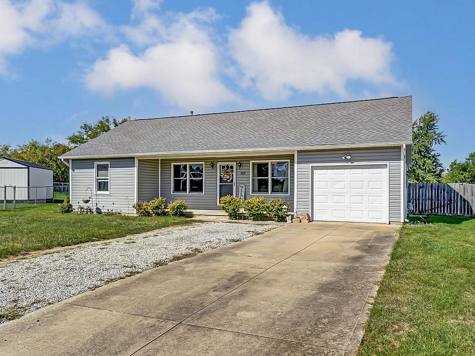 This beautifully maintained home offers 3 spacious bedrooms, 2 full baths, and sits on a desirable cul-de-sac lot. Enjoy outdoor living in the huge privacy-fenced backyard with a large deck and a handy shed for extra storage. Inside, the open layout shines with LVT flooring throughout and an oversized laundry room. The kitchen features stainless steel appliances, perfect for meal prep and dining area. Primary bedroom features its own full bath. Updates include new siding and roof (2021), and a water softener for added comfort. With an expanded driveway and garage, parking is abundant. Large front porch perfect for sitting and enjoying the quiet street.