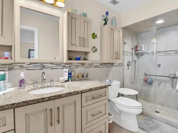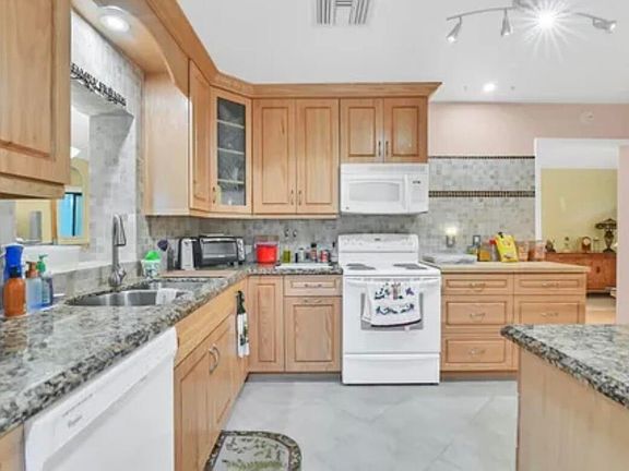 Welcome to your dream oasis in the heart of Florida Gardens, Lake Worth! This single-story, non-HOA gem welcomes you with 3 bedrooms and 2 bathrooms, offering the perfect blend of comfort and style.As you step inside, you're greeted by a cozy living room and a relaxing family room featuring a fireplace and sliding door access to the patio, creating a warm and inviting atmosphere. The kitchen boasts granite countertops and a beautifully tiled backsplash, making it a culinary delight.The master bedroom is a true retreat, featuring an ensuite bathroom and a spacious walk-in closet. Two additional bedrooms are generously sized, offering ample closet space to meet all your storage needs. Step outside to an open porch, perfect for enjoying the Florida breeze, and a backyard with a shed, providing additional storage or space for your hobbies. The property also includes a convenient laundry room and a 2-car attached garage for added convenience.