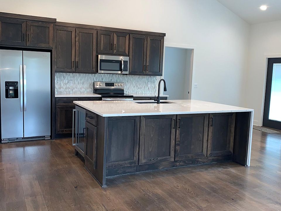 One year new ranch townhome located on a beautiful wooded lot. This beautiful property walks into a gorgeous light filled entry. The great room has a 20ft beamed ceiling. Hardwood floors through out. The kitchen boasts a a walk in pantry, stainless steel appliances, range hood, dishwasher microwave and refrigerator. The island has a beautiful quartz waterfall countertop with built in beverage bar. The laundry has lots of cabinets and hanging space (Washer/dryer not provided). The master suite has tall beamed ceilings with a ceiling fan, and a sit down vanity/mirror. The master bath has a free standing bath tub a walk in shower, double bowl vanity and enclosed toilet area. The walk in master closet has lots of space for both hanging and folded clothes. The second bedroom has tall ceilings and a ceiling fan as well as a double wide closet. The second bath is adjacent to the bedroom and offers a beautiful walk in shower. This is an energy efficient, quiet and very well maintained property located on an old tree farm. Truly a rare find. Owner takes care of lawn maintenance. Tenant pays all utilities. Xfinity and google fiber are the internet providers.