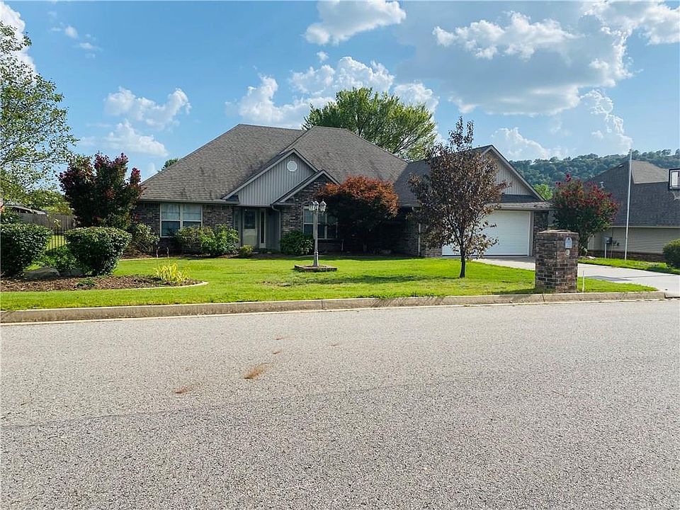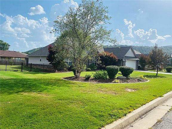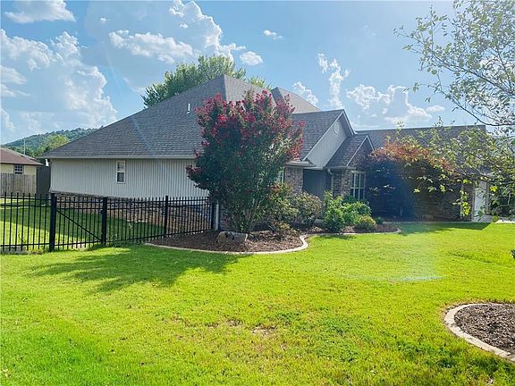 This beautiful, well maintained home sets in a nice subdivision where you could walk the neighborhood and see views of Cavanal Hill leaving you with the feeling of being away from town but close by. It's best features are not only outside beauty but inside with 4 beds, 2 1/2 bath, master bedroom has full bath w/wrap around closet. The open kitchen looks into a spacious living room. Back patio. Outside walk in storm shelter. Nice storage building.Manageable landscaping compliments the beauty of this home.