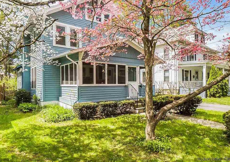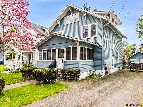 Beautiful Arts and Crafts inspired home tastefully updated and ready to move in- current owners love living here and their pride of ownership shows, lovingly cared for and well maintained. Craftsmanship is evident throughout the home, nice welcoming feel as soon as you enter and- pass thru the screened in porch to foyer and large living room complete with hard wood floors and plenty of windows letting in lots of light, opens up to the dining room with contemporary feel, nice view looking out to the deck and yard- as you go out thru the kitchen you can access the new deck built for entertaining-you will be greeted with sunshine and gardens, trees for some shade and a two-car detached garage which could make a great studio- home also comes with solar panels to help offset utility costs. Main area of the home has a great flow, living room is bright with built in custom shelves and cabinetry and is open to the dining area and kitchen- there is also a half bath on the first floor. The second floor has an open den and three nice sized bedrooms and renovated full bath. The attic is great, and the basement is dry and perfect for a workshop and storage. This location is well placed as its easy access to everything uptown and not far from route 32, 15-20 minutes to Rosendale and 25 to New Paltz - (All real estate professionals and members of the public are required to wear a mask when visiting this property.)