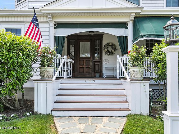 This Spring Lake Gem is the classic Spring Laker with a wrap around porch with white wicker furniture and is located one block from the beach and downtown Spring Lake. This elegant home is located on a 75 x 150 lot and has been recently renovated complete with tasteful decor and a lush yard with both a deck, patio and fire pit. There are 7 bedrooms (5 ensuite) and a total of 6 1/2 bathrooms. This home has a baby grand piano, cooks kitchen with bar area and beautiful furnishings and appointments. The home is 5 houses from the beach and gazebo on Washington Avenue and is perfect for enjoying the beach, relaxing or entertaining! Summer rental - August 1-15, 2024 @ $25K/wk (only dates available)