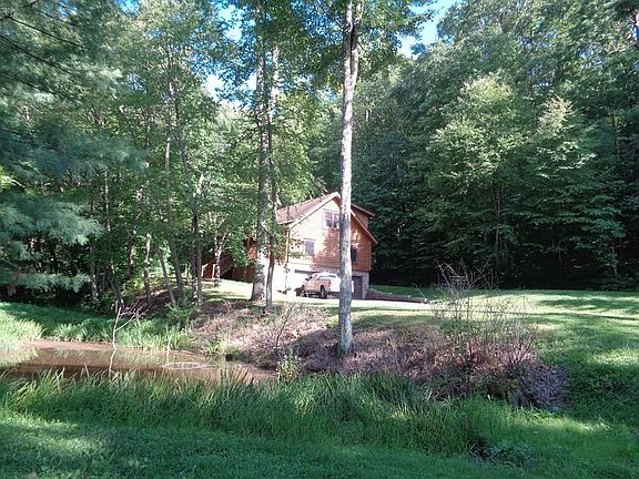 This beautiful log home sits on 3.25 acres of land. Small pond in front yard. Covered front porch with decking and patio area on side of home for complete privacy. High ceilings with wood beams through out the entire home. Open kitchen, dining & living areas with 2 sets of French doors leading to the patio. New carpet & fresh paint. Hard wood floors. Loft area is large with tons of lighting!