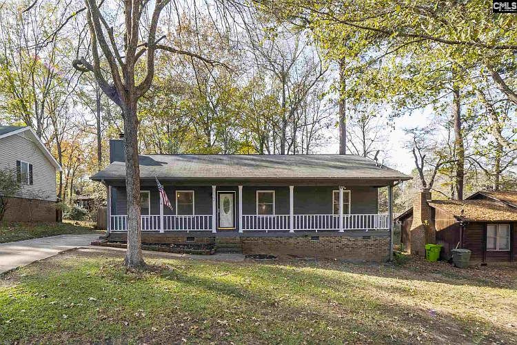 Highly desirable single level floor plan and location. This low maintenance home offers a nice sized covered front porch that spans the length of the home offering you picturesque views of your front yard. Upon entry you are greeted by the attractive wood laminate flooring that enhances the elegance of your brick accented fireplace. Off of the great room is the kitchen area with island. All open to the great room. The kitchen offers ample counter top and cabinet space. Walk in full sized laundry room off kitchen with new flooring. The spacious master suite offers a large walk-in closet including a private full bath with garden tub and updated vanity. The two additional bright and open bedrooms have ample closet space and share a full bath. The enormous backyard offers a multi level deck, perfect for the big game or those family get togethers, and a full privacy fence. For an added bonus there is attached rear walk-in storage. For an added peace of mind the HVAC system is only 5 yrs old + - and roof is only 8 yrs old + -. Zoned for award winning Lexington Richland 5 schools. Convenient to shopping, dining, interstate access, schools, and the new Park Ridge Hospital.
