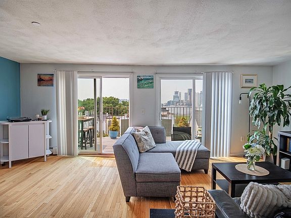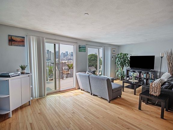 Welcome home to your Top-Floor Penthouse with Stunning Boston Views! Discover city living at its best in East Boston’s sought-after Jeffries Point. This spacious 3-bedroom, 2-bath condo offers over 1,400 sq ft of open-concept living. Enjoy hardwood floors in the living and dining areas, with tile in the kitchen and hallway. The chef’s kitchen is equipped with ample storage, including a large pantry and under-island cabinets. The primary bedroom features an en suite bath and double closet. Relax on your private 80 sq ft balcony, offering impressive views of the Boston skyline and harbor. Additional features include a deeded off-street parking spot, in-unit washer and dryer, an intercom system for added security and basement storage space. With elevator access and a location just minutes from Piers Park, the MBTA Station, and Logan Airport, this penthouse is a rare find in a prime urban setting. Don’t miss out—schedule your tour today!