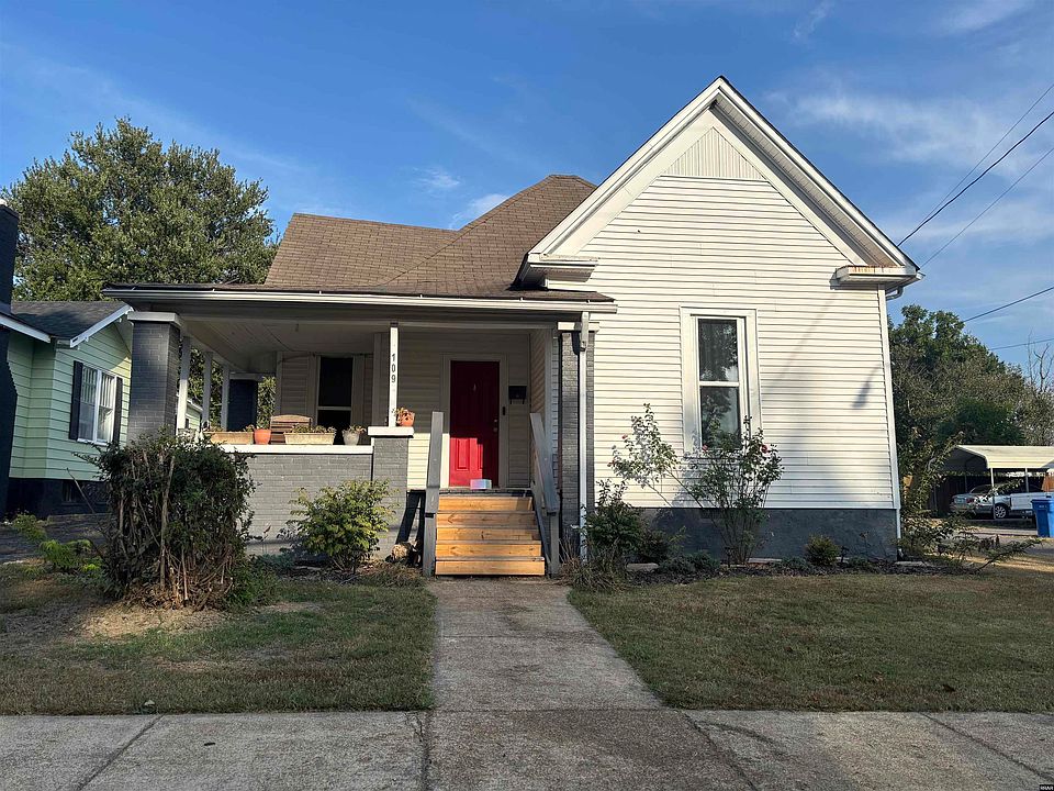 Step into this beautifully remodeled 2-bedroom, 1-bath older home showcasing an updated kitchen, dining room, and spacious living room. Nestled on an extra-large lot, it offers a sizable storage building, choice of rear or street parking, and tasteful finishes throughout. Move-in ready and decorated to impress. The large kitchen features stainless appliances which remain with the property. Nice front and rear back porches. Roof is one year old!