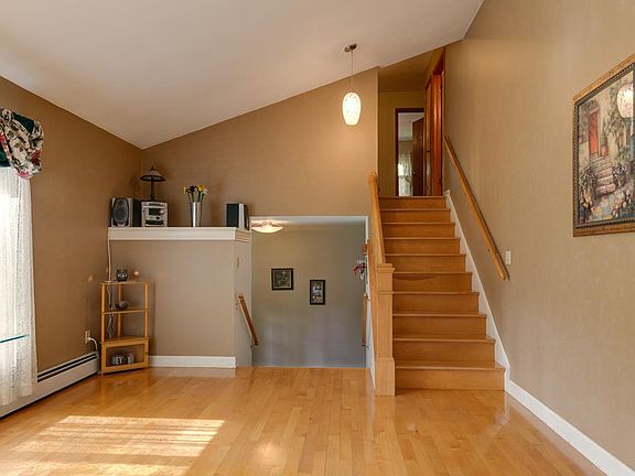 This Tri-level home sits on an approx. 1A lot that's beautifully landscaped, including a garden area that is built with "landscape stone." The home is move in ready. The living & dining rooms have a cathedral ceiling & lovely hardwood floors. The kitchen is updated & the family room is spacious with a great fireplace & it opens to a beautiful 3 seasons room. This sunroom has lots of windows & a gorgeous view. An upgrade in it's heating source would make this a wonderful year round living area. Upstairs is a master bedroom suite & 3 more bedrooms. All new windows & lovingly maintained.
