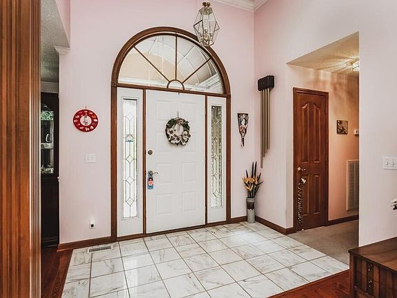 All one level, formal living and den, butler area flanks kitchen, large master suite w/tray ceiling, vaulted ceilings, FP in den is now electric but could be wood burning again. Unfinished basement with high ceilings with utility door, sec. system worked when stopped using but AS IS, central vac, huge deck with view, pocket doors, some floored attic. Custom built and loved home on cul-de-sac.