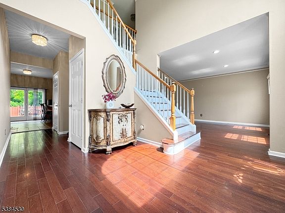 Nestled in the highly desirable Stewarts Hunt community, this elegant Center Hall Colonial offers spacious living and timeless appeal. Upon entry, a grand center hall foyer sets the tone, flanked by a formal dining room that is ideal for hosting gatherings in style. The heart of the home is an expansive eat-in kitchen, featuring granite countertops, stainless steel appliances, a central island with a breakfast bar, double sink, and generous cabinet space perfect for both everyday living and entertaining. The inviting family room, complete with a wood burning fireplace, creates a warm and welcoming atmosphere for quiet evenings and casual gatherings. A well-appointed powder room, convenient access to the two-car garage, and a laundry room round out the main floor. Upstairs, the home offers four generously sized bedrooms, including a tranquil primary suite with a private bath. An additional full bath serves the remaining bedrooms. The fully finished basement provides flexible space for a media room, home office, gym, or guest suite, and includes a full bath for added convenience. This beautifully maintained home is an exceptional opportunity in a sought-after community. Schedule your private showing today