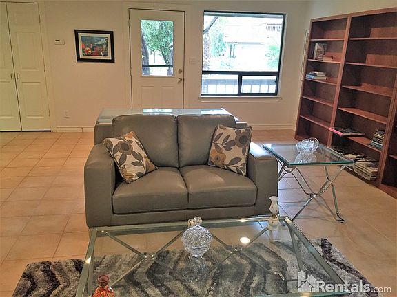 One bedroom - one bath, single story fully furnished guest house with living room, kitchen/dinning area and office. Guest house sits on large wooded lot in a quiet, rural-like setting, only 20 minutes from the airport, 15 minutes from Shops at La Cantera and University of Texas at San Antonio, 25 minutes from the medical center and 10 minutes from The Rim shopping district and Fiesta Texas. Downtown San Antonio is a 30-minute drive away. The house is air conditioned, fully furnished and the kitchen has a full size refrigerator, oven and stove. Satellite TV and utilities are included.