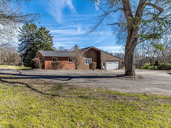 Surround yourself with the serenity of nature in this sanctuary like private setting of over 2 tabletop acres & call this 4 bed, 2.5 bath brick & white cedar home your own!One-of-a-kind charm & quality craftmanship prevails & is evident the moment you enter from the amazing custom patterned woodwork on the walls in the game room to the gorgeous, rustic, barnstone fireplace that anchors the family room w/bar alcove, hand-planed varnished wood counters in the breakfast nook off of a fully equipped kitchen,wood beams,and so much more!Natural sunlight pouring in & beautiful views are enjoyed from the large & abundant windows in every room.A formal dining room is conveniently located adjacent to the kitchen making family dinners a breeze & a main livingroom for gathering.Enjoy all seasons in the hot tub perched on the huge, magazine worthy patio & trek deck complete w/fire pit & breathtaking views! Storage is not lacking in or out w/2 stall garage w/nature stone floors & 2 compartment shed.