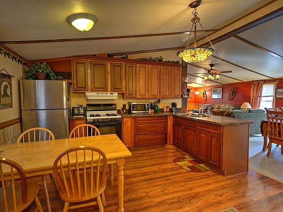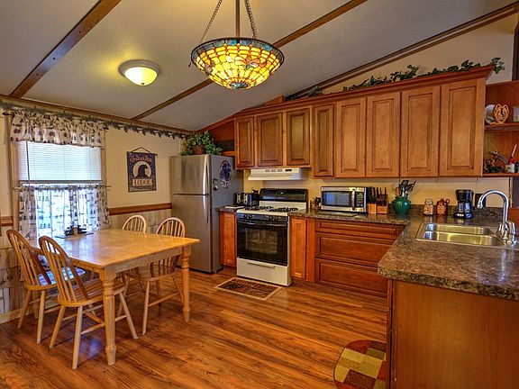 UPDATED YEAR ROUND RANCH All the work is done! The exterior has log siding, all new windows and roof, new gutters and fenced yard. Inside, the kitchen has been remodeled with new cabinets, new appliances and counters, the bathrooms are updated with hickory cabinets and granite vanity tops, and there is all new flooring throughout. My favorite part is the wood stove with the custom stone walls and hearth as the focus point of the house making it warm and inviting. A great location near area trails, the water park, or a jump in the lake... and just a short walk to a great barbeque restaurant!