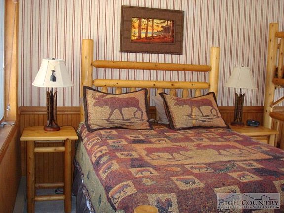 Relax in this cozy mountain cottage, enjoy the cool summers at 4650 feet, decompress on the covered front porch during an afternoon shower or sun in the air on the private open deck off the kitchen and master bedroom. This home has open family living with stone fireplace viewing from kitchen, dining, bar and family gathering areas. The master bedroom has its own stone fireplace and separate exit to an open deck. This 2 bedroom 2.5 bath cottage is tastefully furnished and appointed with real stone and old mountain style. The gently sloping double lot allows for expansion and feels private with Beech Mountain neighborhood living. The 1 car garage allows easy entry to the home no matter the weather or season. Come visit this property and see what mountain comfort is all about. Winter and summer long range views!! Beech Mountain Country Club membership is current. Property will easily expand to 3 bredrooms!!!