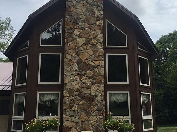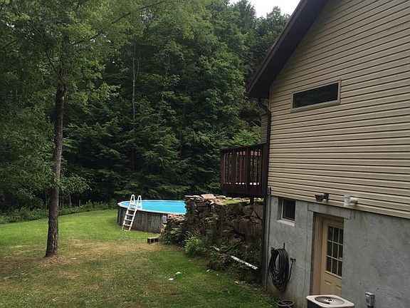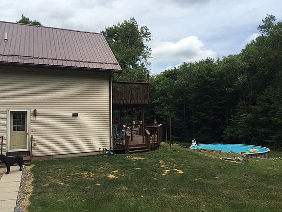 Location!! 4.23 acres. Beautiful, stick built home, very private, with a large deck and above ground swimming pool. Cathedral ceilings and floor to ceiling wood fireplace. New: real hardwood floors, metal roof, and pool heater. Appliances and some furniture stays with the house. There is also an in ground electric dog fence.
