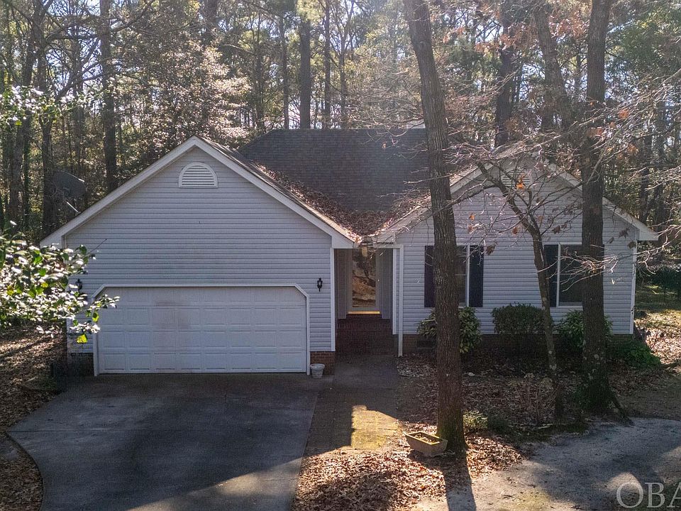 Seller is only scheduling showings for 1/20-1/22 between 12-6pm... This one-level home is just adorable and a MUST SEE. Less than 5 minutes to Kitty Hawk on a large private lot in a cul de sac, located just across the bridge. Attached two car garage and a great fenced backyard! The home features two bedrooms, however it has a 3 bedroom septic installed, if you wanted to add a bedroom. Great woodburning fireplace and eat in kitchen. Beautiful sunroom overlooking the backyard. The largest bedroom has an ensuite and great walk in closet and large bath with double vanity. The 2nd bedroom is a nice size and has a walk in closet. Utility room with washer dryer and utility sink. You can enjoy a dry entry into the kitchen from the attached two car garage. Nice sized pantry in kitchen. The backyard also has a utility shed, a HUGE outdoor shower and an outbuilding that has a half bath, mini fridge, microwave,bed and its own sundeck. Brand new water heater just installed.