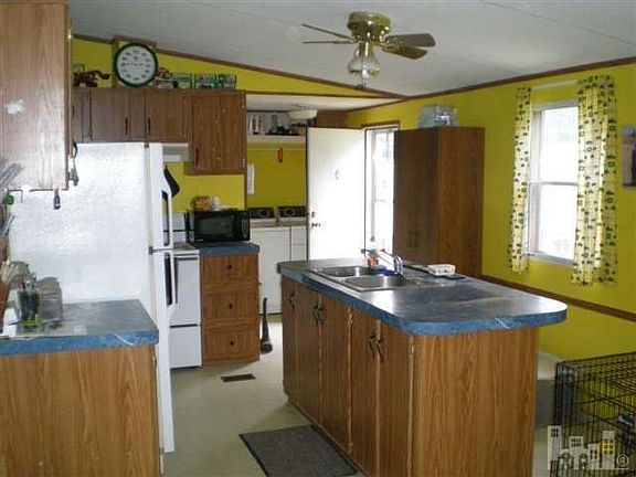 Nice covered front porch but the back deck is even better! Enjoy your rocking chairs. Pick fruit from your plum and pear trees to make this home even more special. 3 BR/2 BA manufactured home on brick foundation on 2/3 of an acre. Good size master bedroom and bath. Nice 2 car detached garage, large work shop and storage shed - all wired for your convenience. Home Warranty included also. Don't let this home get away.