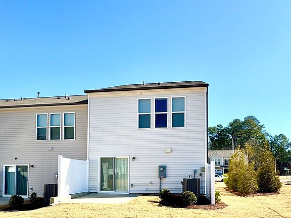 Spacious end-unit townhome, larger Hermingway Plan featuring modern stainless-steel appliances, a gas range, refrigerator, and a large granite island with a stainless double-bowl undermount sink. This like-new home includes a one-car garage and an open-concept great room and dining area with 9 ft. ceilings downstairs. Enjoy stylish ceiling fans, smart home features, and plenty of workspace and seating at the island. Upstairs, the primary suite boasts a granite vanity with double sinks, a 5' Sterling shower, and a large walk-in closet. The laundry area includes a washer & dryer, and a pedestal sink enhances the downstairs powder room. Durable vinyl flooring downstairs and cozy carpet upstairs. Prime location just 15 minutes to downtown Raleigh, 5 minutes to White Oak Shopping, with easy access to I-40 & 540. Only 10minutes from Lake Benson Park. Square footage is from tax records. Make it your own home or rental investment with Amazon located in Garner.