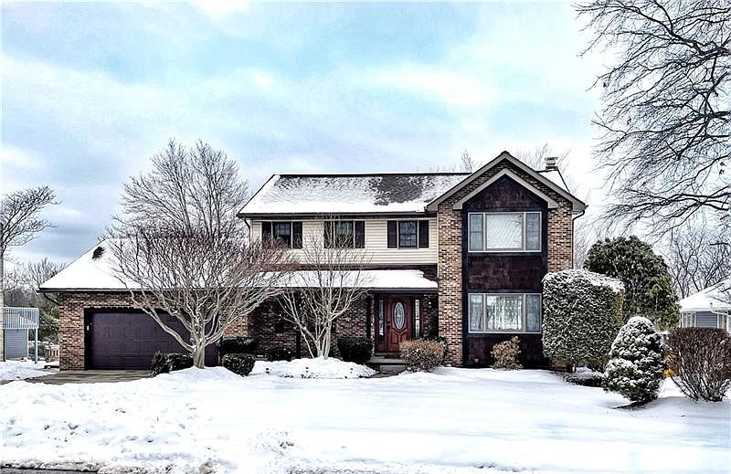 Captivating, quality and well designed custom home in the prime community of Center Twp and Central Valley SD~ Impressive curb appeal approach welcomes you from garage or wood and etched glass front door to eat-in kitchen w choice of casual dining area open to back yard views or formal dining rm enhanced with trey ceiling design~ Enjoy upgrades of quartz counter tops, engineered hardwood flooring, SS appliances, modern lighting~ Family room offers comfortable space with central brick fireplace for cozy days/nights. Second fl feat: en-suite Master/full bath w glass door entry, stunning ceramic tub/shower surround, porcelain fl, dbl vanity sinks, & bronze fixtures! ~ Bonus features incl: 200 amp service, new windows, water softener, reverse osmosis/kitchen, newer hw tank, furnace and AC! Need more space?...sumptuous full basmnt & attic garage can fulfill- solved! Convenient to I-376, major 2ndary roads, Shell plant, public facilities, schools, colleges, shopping and places of worship.