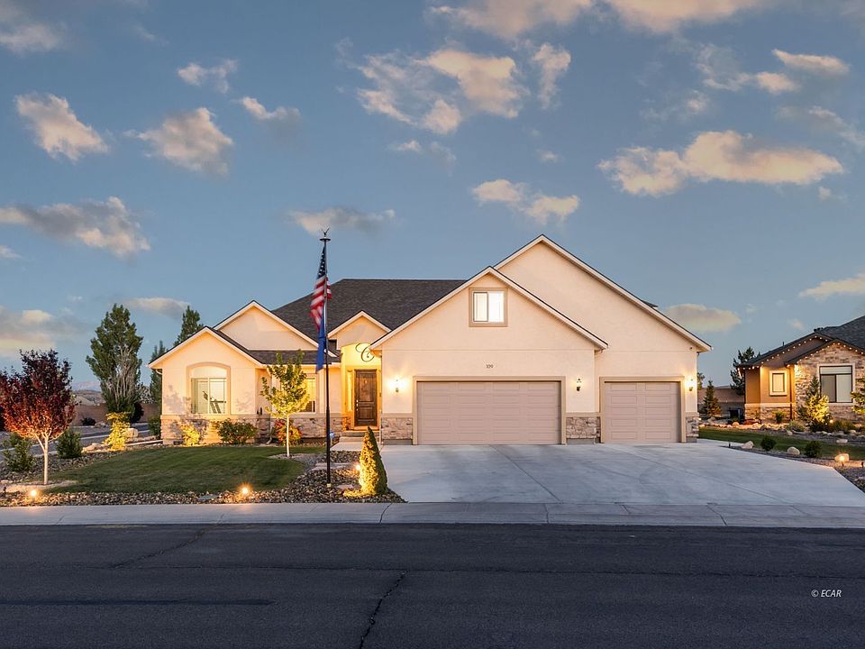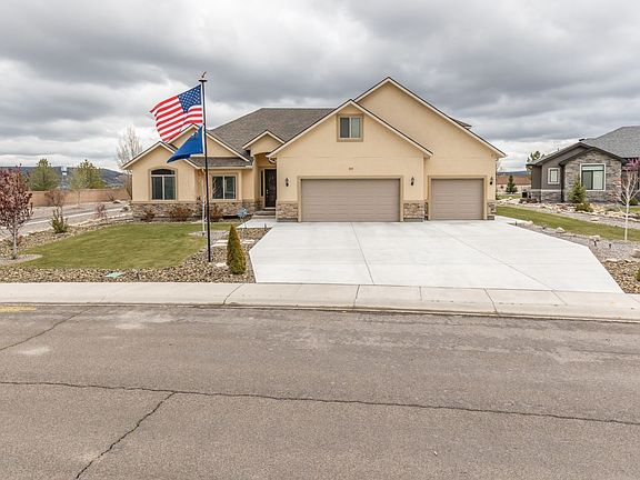 Welcome to your dream home by the Ruby View Golf Course! This 2019 custom 5 bed 3 bath gem features a spacious floor plan with a large kitchen island crafted from Bronzite stone, complemented by a beautiful tile backsplash and alder cabinets. The living room is adorned with a stone gas fireplace with custom alder mantle flanked with custom cabinets topped with matching Bronzite stone. Step out of the custom slider leading to a sizable patio overlooking the lush backyard equipped with a drip system, sprinklers, and auto lighting. The back yard is perfectly oriented for enjoying the Fourth of July fireworks! The wow factor continues with large bedrooms on the main offering vaulted ceilings and abundant natural light. Rest and relax in the primary suite complete with a luxurious freestanding tub, upgraded tile shower, and a large walk-in closet. Upstairs, step into a second family space, classroom or game room in its own climate controlled bonus room! Two spacious bedrooms, a large bathroom and cozy nook for office space or reading, round out the upstairs! 4 car garage offers storage space, hot and cold spigots and a urinal in the garage!