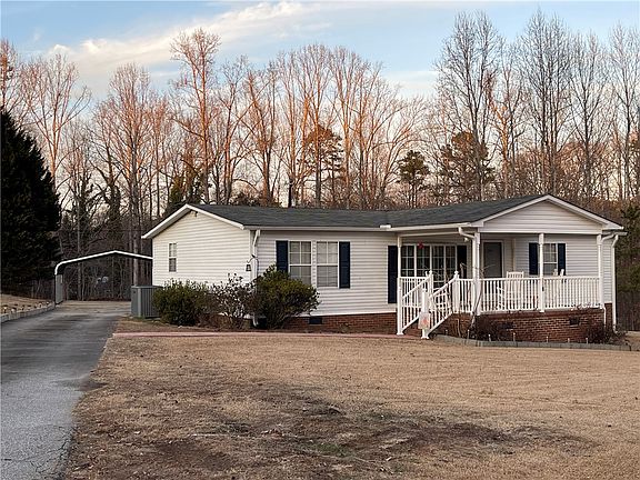 Check out this well-maintained home, located on a quiet cul-de-sac in Dacusville. This 3 bedroom, 2 bath home features an open living/ dining room floorplan which is great for entertaining. The owner’s suite is located privately on the left side of the home and features a large ensuite bath with garden tub, separate shower and a double sink vanity. The additional 2 bedrooms are spacious, have large closets, and are located separately on the right side of the home. The kitchen is fully equipped with smooth top stove, refrigerator and a new dishwasher. The kitchen has plenty of cabinetry and features a breakfast bar that opens to the living room. Just off the kitchen, is a full-size laundry/ mud room with an included washer and dryer set. Outside you will find a spacious yard located alongside the cul-de-sac, surrounded by well-kept homes. The asphalt driveway leads to a 2 car carport and 2 storage buildings for storing toys or off season items. You can spend many hours enjoying the large concrete front porch or the covered back deck overlooking the 1/2+ acre lot. This home is conveniently located within a short drive to Easley, Greenville and Pickens. The owner is a licensed SC real estate agent.