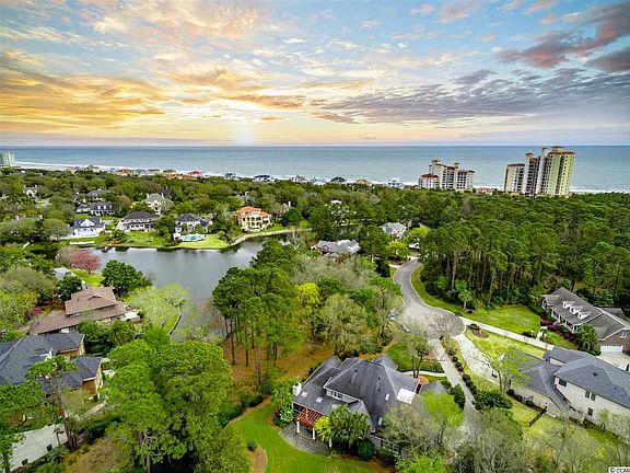 A Million-Dollar Plus home -- and worth it! LOCATION (One Block from the beach); LOCATION (close to the Dunes Beach & Golf Club); LOCATION (in the center of a quiet cul-de-sac); and LOCATION (on high ground - NOT in a Flood Zone). A beautifully appointed 5,200 plus sq. ft. Southern beauty! Has all the Plus Features -- Real Oak hardwood floors, stainless steel appliances, granite counter tops (of course), natural gas cook top, an 8 foot concrete & steel wall surrounds the manicured landscaping, and and abundance of cabinets and book shelves (done by a Master Carpenter) plus much "more"! The "more" includes the ensuite bath (1st floor) with a coffee bar, heated tile floor in the Master Bath, built-in cabinets in Master Bath, His & Hers Closets and Vanities. The Master adjoins a working office with closet that could be Bedroom #6 if needed! The kitchen was remodeled 8 years ago and flows into the Den and then into the Great Room. Upstairs are 4 Bedrooms with two Baths. The home was encapsulated for Climate Control, complete with a dehumidifier. It has a two and a half car garage (great for Golf Cart), Two Rinnai Water Heaters. The third floor attic allows for multiple storage. The home is topped off with a Fifty Year shingled roof. Enjoy the pictures to see the beautiful Formal Dining Room with Chandelier, floors and layout. Truly a tasteful gem of a home in Myrtle Beach.
