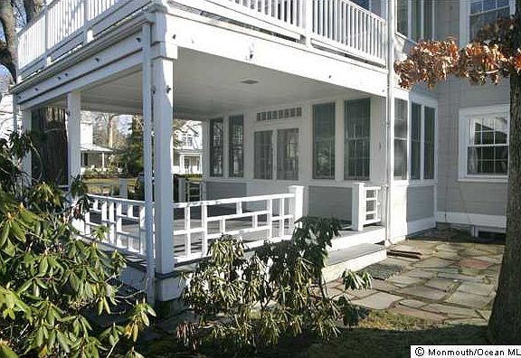 This charming home is located in the heart of town and situated on a private 100X150 property.Features include four large and bright bedrooms including a master suite with French doors accessing a large second level deck, four full baths, a large formal living room with a masonry fireplace, formal dining room, updated kitchen, family room and a cozy sun room with French doors accessing a large and private covered blue stone porch, full basement and a two car detached garage. Great opportunity for updating, or new construction. One and half blocks from the beach and close to town, schools and shopping.