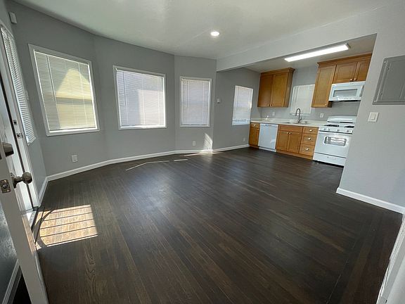Cute completely remodeled 2 bedroom house Open concept kitchen and living room with lots of light Refinished hardwood flooring in living room & kitchen New carpet in bedrooms Remodeled kitchen with all new cabinets, counters & appliances Large closets in both bedrooms All new bathroom Laundry hookups in separate laundry closet Off street parking included - 2 car garage and driveways. Stairs required to access home. Great location - near freeways, downtown, uptown, grocery stores, shopping and more!