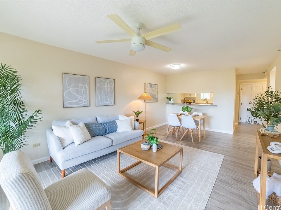 Explore Country Club Village 3 in Salt Lake, a desirable 2 bed, 2 bath 2-parking pet-friendly top-floor unit conveniently situated near the pool and recreation area. This home boasts a generous layout with two bedrooms, and recent updates including luxury vinyl plank flooring and a fresh coat of paint. Enjoy the comforts of home with in-unit Washer/Dryer, window A/C, and a lanai that welcomes the tropical breeze. The lanai offers a peaceful treetop garden view and distant cityscape, ideal for savoring the island's indoor/outdoor lifestyle. Safety is enhanced with fire sprinklers throughout the unit. Two covered tandem stalls below on the ground level. This highly sought-after, complex features 24/7 security, an on-site management office, intercom access, a pool, BBQ area, walking/jogging paths, and ample guest parking. Easy freeway access ensuring a perfect blend of convenience and tranquility. Seize this chance for an extraordinary lifestyle at Country Club Village 3!