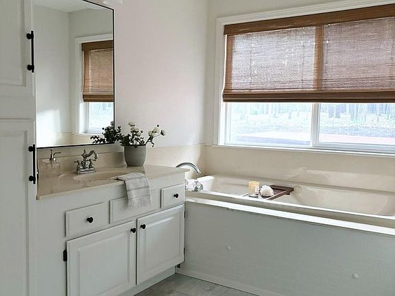Absolutely stunning home kept in pristine condition, situated on a tree lined paved driveway greeted by 2.10 park-like acres, mostly level w/mountain views. This immaculate, recently renovated single level residence will captivate you with a warm ambiance & spacious living boasts 1918 sqft, 3 bedrooms, 2 bathrooms refinished wood floors, large windows flood the space w/natural light, spacious primary has walk-in closet, jacuzzi tub, formal dining or den, open kitchen w/new appliances & countertops, newer HVAC, New Hot water heater, painted in & out, finished 2-car garage, 24X16 shop, RV parking, inground sprinklers, fenced yard with patio & front deck to enjoy the peaceful country setting.