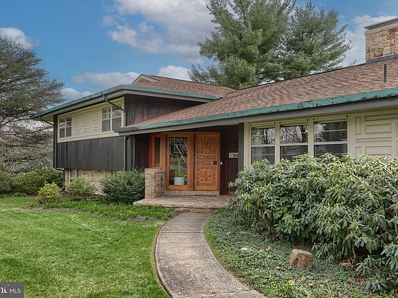 This mid-century modern dream home, inspired by the visionary Frank Lloyd Wright, awaits you! Crafted with exotic, high-end materials and meticulous attention to detail, this home offers a seamless fusion of timeless elegance and modern luxury. Situated on a quiet cul-de-sac, the sprawling 1.16 acre lot offers mature trees, lush flower beds and ample space for outdoor relaxation and recreation. As you enter, the refinished hardwood floors on the main level invite you further into a space where mid-century details are lovingly preserved. The original pendant lights that welcome you at the entryway, and exotic wood paneled walls throughout the home add a touch of nostalgia and charm. The heart of the home is a custom-built, two-story, three-sided stone fireplace that adds warmth and character to the living space. The large eat-in kitchen has newer stainless steel appliances, including a 36 inch cooktop with telescoping vent. Large pocket doors can be closed to separate the kitchen and dining space from the open concept main level. A custom built bar top in place of the indoor grill is great for entertaining. A powder room, laundry room and loads of closet space complete this level. Upstairs the mid-century charm can be found throughout the 3 bedrooms and large bathroom. Many of the original details have been meticulously maintained in the stunning bathroom, with original tile work and fixtures. The largest upstairs bedroom could be converted to 2 bedrooms, providing a 5th bedroom if needed. Additionally you will find 2 linen closets and pocket doors to close off this level from the open floor plan. Downstairs is a beautiful primary suite that includes a large bedroom, spacious walk-in closet and large modern bathroom with oversized soaking tub and large walk-in shower. An additional large, unfinished storage area offers the possibility of additional living space. The spacious and open lower level offers even more living space. The fireplace continues to be a focal point of the home as it can be enjoyed while relaxing in the family room or entertaining friends. With easy access to the outdoors, walk out to a covered patio with views of the serene backyard. A convenient half bath, a root cellar that could be converted to a wine cellar and utility/storage room complete the space. Additional features include an oversized 2 car garage allowing ample room for 2 large vehicles, additional storage space, newer A/C (less than 5 years old), newer hot water heater (less than 2 years old) and kitchen appliances (less than 5 years old). This home is centrally located with easy access to shops, restaurants and major highways, a short walk to Bishop McDevitt High School, plus, enjoy exclusive access to Twin Lakes, where two large man-made lakes await for fishing and leisurely strolls.