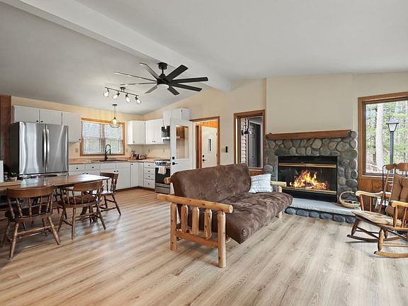 Looking for peace and tranquility? This year-round home on quiet, non-motorized Chickaree Lake checks all the boxes. Situated on over 5 acres with 370 feet of lake frontage, this 2 bed, 2 bath home includes a full unfinished basement and an attached one-car garage. Thoughtfully updated with new flooring, light fixtures, exterior doors, kitchen appliances, countertops, resurfaced cabinets, bathroom vanities, fresh interior paint, new well and water conditioner, and an owned LP tank. Internet is available. Whether you're drawn to wildlife, peaceful recreation, or relaxing lakefront views, this property offers the Northwoods lifestyle you’ve been searching for—just minutes from Eagle River’s downtown amenities.