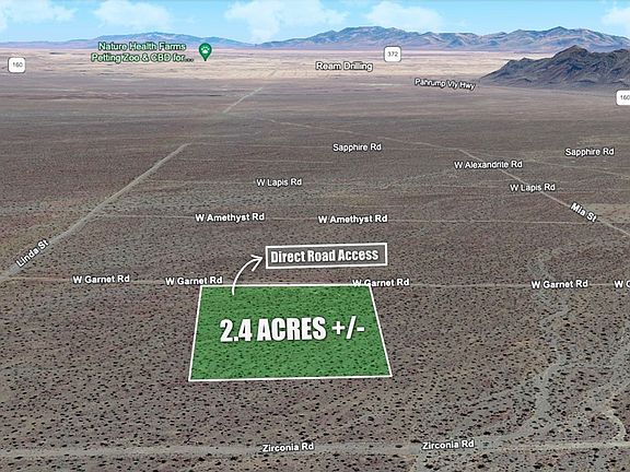 Welcome to Pahrump! This 2.4-acre lot, located in the northern part of town, offers stunning mountain views and potential for future development. Situated on a gravel road, access to the property may require a taller vehicle or 4-wheel drive. With nearby ATV trails and open space, it’s perfect for outdoor enthusiasts.