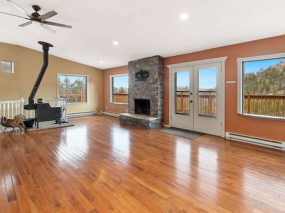This updated beautiful mountain retreat has the Colorado views you have been looking for! Located on the western side of Coal Creek Canyon Drive, enjoy direct views of Apache Peak and the Continental Divide. You will love dining out on the massive deck as the Colorado sun sets behind the mountains. As the peaks coat with snow in the winter, stay warm by the classic wood stove and stacked stone fire place of the living room. 35 minutes to downtown Boulder, 30 minutes to downtown Golden, 15 minutes to downtown Nederland, 20 minutes to Eldora, and 50 minutes to downtown Denver, this mountain retreat can still give you quick access to the office, slopes, breweries, restaurants, and shops that you love. You already will have the views at home, and you will still only be minutes away from the best outdoor areas of Colorado by having quick access to the James Peak Wilderness and Indian Peaks Wilderness areas. The interior of the home is just as marvelous as the exterior! As you walk into the main living area, you're welcomed with brand new wood floors, a stacked stone fireplace, high vaulted ceilings, a wide open floor plan, and beautiful mountain views through all the windows in the space! The kitchen is freshly painted with stainless steel appliances and a new wood backsplash. The entrance to the Primary Bedroom is through a private set of stairs off the living area and features brand new wood floors, vaulted wood ceilings, and a large and beautiful private Bathroom! The lower level has a functional workshop that is perfect for any hobby, and it also has plenty of space to store all your Colorado outdoor gear. And who can forget the incredible climbing wall!? Schedule your showing today! High-speed Starlink internet for connectivity for streaming, gaming, and working from home! Review Gilpin County's short-term rental regulations here: https://gilpincounty.colorado.gov/departments-offices/community-development/short-term-rentals.