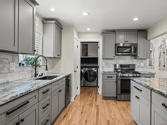 Welcome to your dream home in picturesque Lakewood, Colorado! Nestled near the prestigious Lakewood Country Club and conveniently close to Denver and Golden, this meticulously updated brick ranch-style residence offers the perfect blend of classic mid-century charm and modern convenience. Set on a huge 1/3 acre elevated lot, this stunning home features a contemporary open kitchen designed for both style and function. Enjoy cooking in a space adorned with sleek gray soft-close cabinets, luxurious granite countertops, a striking backsplash, and high-end stainless-steel appliances. The spacious primary suite is a true retreat, boasting an expansive 5-piece bathroom including quartz counters with sleek modern tile plus a walk-in closet that will accommodate even the most extensive wardrobe. Throughout the main floor, you'll find beautiful solid oak hardwood floors that add warmth and elegance to the home's inviting atmosphere. The fully finished basement provides additional living space with a versatile family room, a well-equipped kitchenette, and two bedrooms with egress windows. This lower level is ideal for an in-law suite, guest accommodations, or an entertainment hub. The elevated lot also offers potential space for a future shop/garage addition or parking for work/play vehicles. Don’t miss your opportunity to own this exceptional property that combines convenience, luxury, and potential all in one location. Schedule a tour today and envision your life in this Lakewood gem! ** Newer Furnace and Water heater **