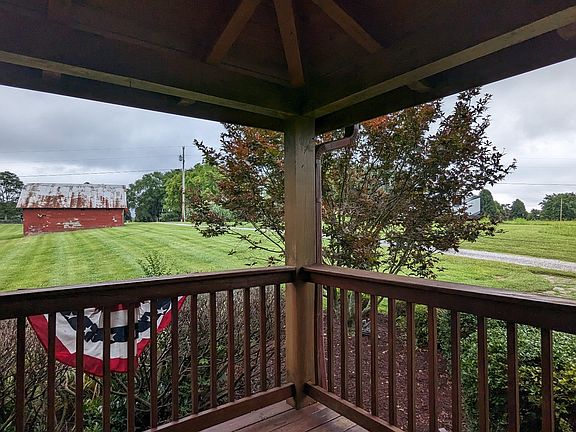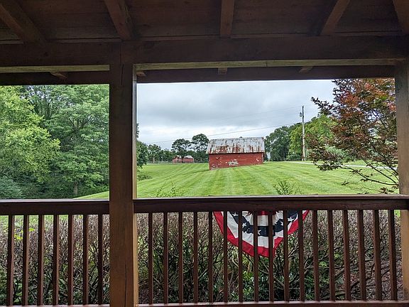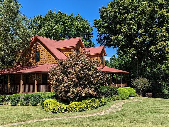 Bring your horses! True Picturesque log cabin home on 11.2 acres w/ plenty flat open land, mature trees, 2 car detached garage w/ covered porch "Leo's Porch" w/ bar & mini fridge, outside wood stove connected to duct work, PLUS a 30x30 barn and a very nice size pond! Enjoy the tranquil setting from the rocking chair, fully wrapped around porch & experience the quiet & beauty that nature has to offer. Perfect retreat to relax and unwind. Breathtaking views. Interior: Pine, beams, logs shipped from Pennsylvania, hand hewed on site, w/ custom kitchen cabinetry, propane fireplace, claw foot tub in primary bedroom, Large closets, Bonus room upstairs, hobby sewing room just off kitchen, laundry shoot. This home has so much to offer. A MUST SEE to appreciate! All this located on dead end road.