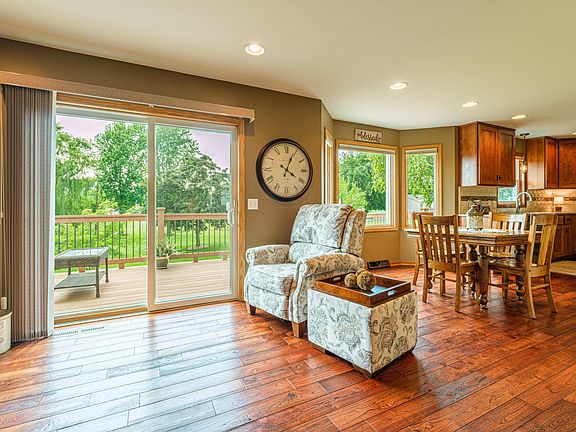 4 bed 4 bath two story home in SW Hutchinson features hardwood flooring throughout the main level and a spacious entryway. French doors with frosted glass lead to an office with vaulted ceilings, a built-in desk with granite countertops cabinets and a storage closet. Livingroom features a patio door leading to a maintenance free deck. Dining room features a bay window and a built-in hutch. Kitchen features s.s. appliances, granite countertops, tiled backsplash, a double oven, an a pantry with pull-out soft close drawers. Half bath and laundry on the main floor. Upper level features 3 bedrooms, a full bath and a linen cabinet. Primary suite features French doors with frosted glass, 2 closets (including one walk-in) and an ensuite 3/4 bath with a tiled walk-in shower with a glass door, heated floor and linen cabinet. Lower level family room features a patio door to walk-out to the backyard, 3/4 bathroom and a 4th bedroom. Come see this beautifully maintained home, pride of ownership shows in this home.