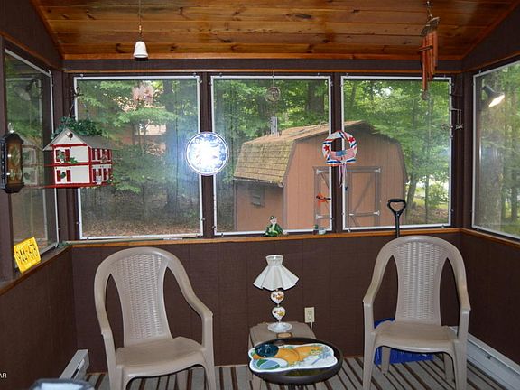 Budget friendly get-away in Wallenpaupack Lake Estates! Secluded screened porch for relaxing, plus fireplace, loft, finished lower level, shed on a lovely level corner lot. Lots to do with the three pools, two beaches , tennis courts, skate park, boating, fishing and so much more!!