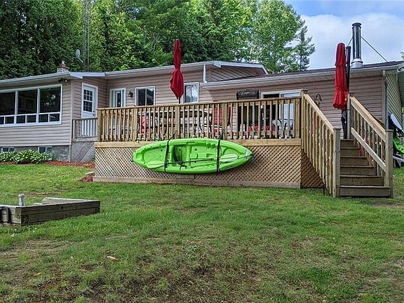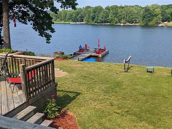 Escape to this fully furnished, year-round home on stunning Moore Lake, just under 2 hours from the GTA and surrounded by the natural beauty of lakes, trails, rivers, and forests. With year-round access on a serviced road and close proximity to Minden, Kinmount, and Coboconk, this property is both convenient and serene. Set on a 100-foot stretch of clean, deep waterfront along a desirable 3-lake chain, this lakeside retreat offers a safe sandy shoreline with shallow entry—ideal for swimming, paddling, and endless summer fun. Whether you're boating, fishing, kayaking, or simply relaxing dockside on the spacious 376 sq ft dock, this is lakeside living at its finest. The inviting exterior features wood-toned siding, a wide driveway, and a peaceful setting with mature trees and quiet green space. Inside, enjoy bright lake views from the kitchen, dining area, living room, and primary bedroom. The main level features a spacious eat-in kitchen with a peninsula and pantry, cathedral ceilings, and open-concept living and dining areas. The lower level offers a large rec room for games, entertaining, or extra guest space. Bonus features include a 1.5-car insulated garage with inside and basement access, a commercial roll-up door, a 12’x24’ storage shelter, and a garden shed. Upgrades like the raised water intake system, separate water line and irrigation pump, central vacuum, updated 100 amp panel, and keyless entry add convenience and peace of mind. Roast marshmallows by the fire pit and enjoy the charming community feel—complete with a little library stand at the edge of the driveway. This is a fantastic opportunity to own a move-in ready waterfront property with plenty of space to relax, entertain, and explore.