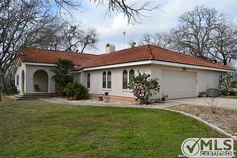 Beautiful Spanish style home has it all... 3 Bedrooms, 2 Baths, Saltillo tile floors, 2 Living rooms, Fireplace, Sunroom, Gameroom/bonus rm, Formal Dining, Island Kitchen, Huge master Bedroom with office, spa like bath. Great home for entertaining on 25.89 acres, In-Ground Pool, Hot Tub, Cabana house with built in BBQ grill. Plenty of room for livestock with Cattle fence, pens, barn surrounded by native trees and brush. Security gate when entering your private secluded Home/Ranch/Getaway.